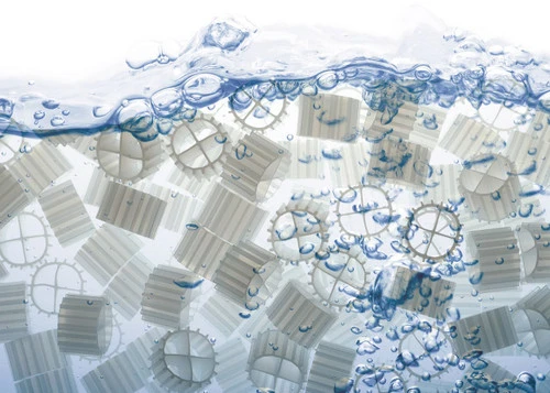 K1 media is engineered in a wheel shape and is slightly positively buoyant. This near neutral buoyancy allows the media to circulate throughout the vessel with only a minimal water flow.