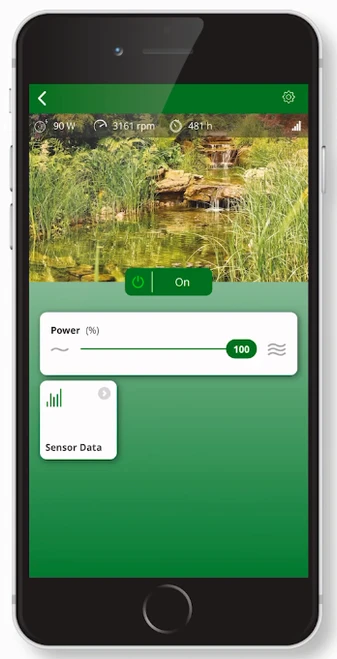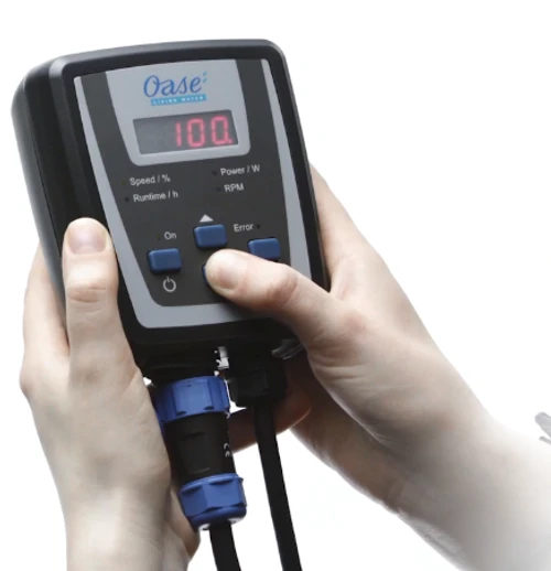 The beauty of the new Oase Aquamax range of controllable pond pumps, is their ability to control the flow rate from it maximum range down to next to nothing, making them the perfect solution for creating the optimum effect when it comes to waterfalls, cascades and streams. One outstanding feature is the option to control the flow using the smart app via your phones or tablets bluetooth connection. The new Aquamax classic C series also comes complete with an integrated pool side controller that’s weatherproof. When first setting up your bluetooth connection the digital display on the controller will show four digits that you will need to enter into the app to establish a link. You will then have the ability to turn your pump on and off, use the power indicator to regulate its flow and access useful information about the Aquamax pump such as the current power consumption in watts, the revolutions per minute, current power consumption as a percentage and the total run time of the pump. Also you will receive alerts if filter pump has any issues, such as the “the pump is running dry, please submerge the pump in water”. The large majority of smart app functions can be used with the integrated controller should you wish.